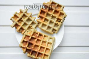 Поки тісто відпочиває, дістанемо вафельницю і нагріємо її гарненько. Випікаємо вафлі за кілька хвилин. Вони мають м’яку структуру, але викладати їх гіркою все ж не рекомендуються, оскільки може утворитися конденсат.