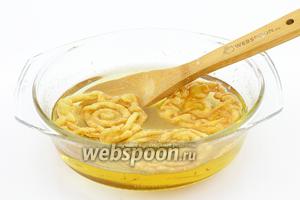 Спіральки занурте по черзі в цукровий сироп на 30-40 секунд.