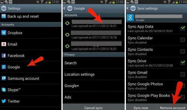 Однак, як показує практика (і це не одиничний випадок), спрацьовує не завжди. Особливо часто повідомлення про те, що в програмі «Сервіс Google Play» сталася помилка, видається системою з кодами збоїв 905 та 492. Це найпоширеніші ситуації. Як виправити помилку Google Play такого типу? Немає нічого простіше. Потрібно просто видалити свою «учетку», а після перезавантаження системи увійти в неї заново.