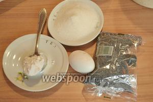 Для макової начинки взяти крохмаль, мак, яйце і цукор.