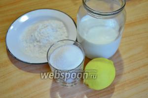 Для крему взяти молоко, борошно (можна ванільний пудинг), цукор, вершкове масло і лимон.