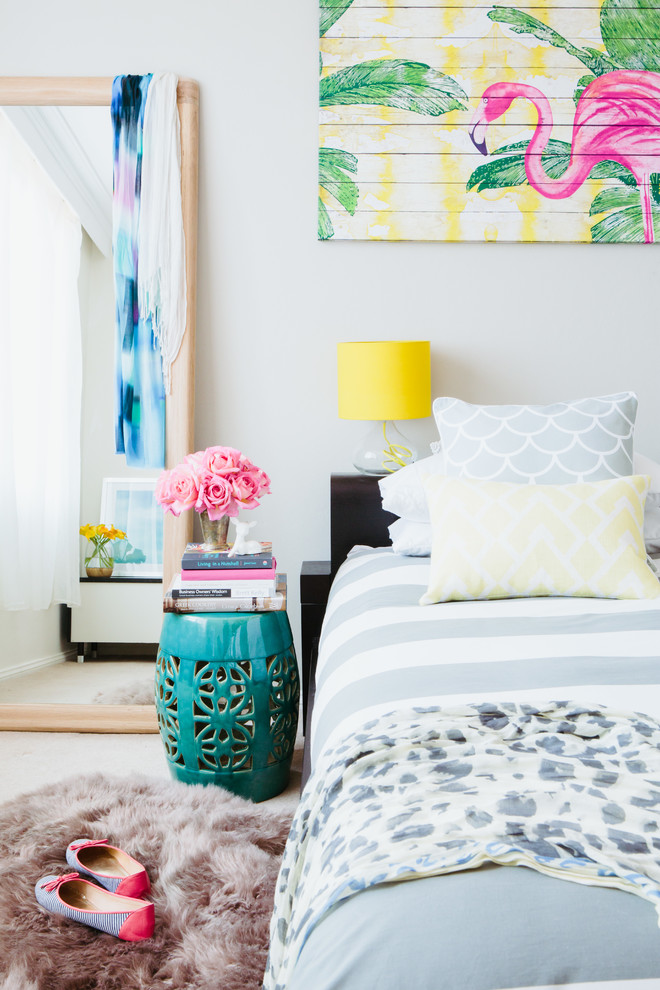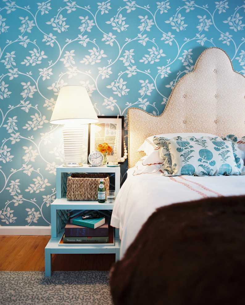 На перший погляд, прості меблі, частіше дерев’яна, але етажерки біля ліжка перетворюються у сховищі найрізноманітніших речей, декору, журналом. На двох-трьох поличках (можна більше) зручно поставити декоративну лампу або нічник, сімейне фото і чашку чаю, скласти книги та інше.