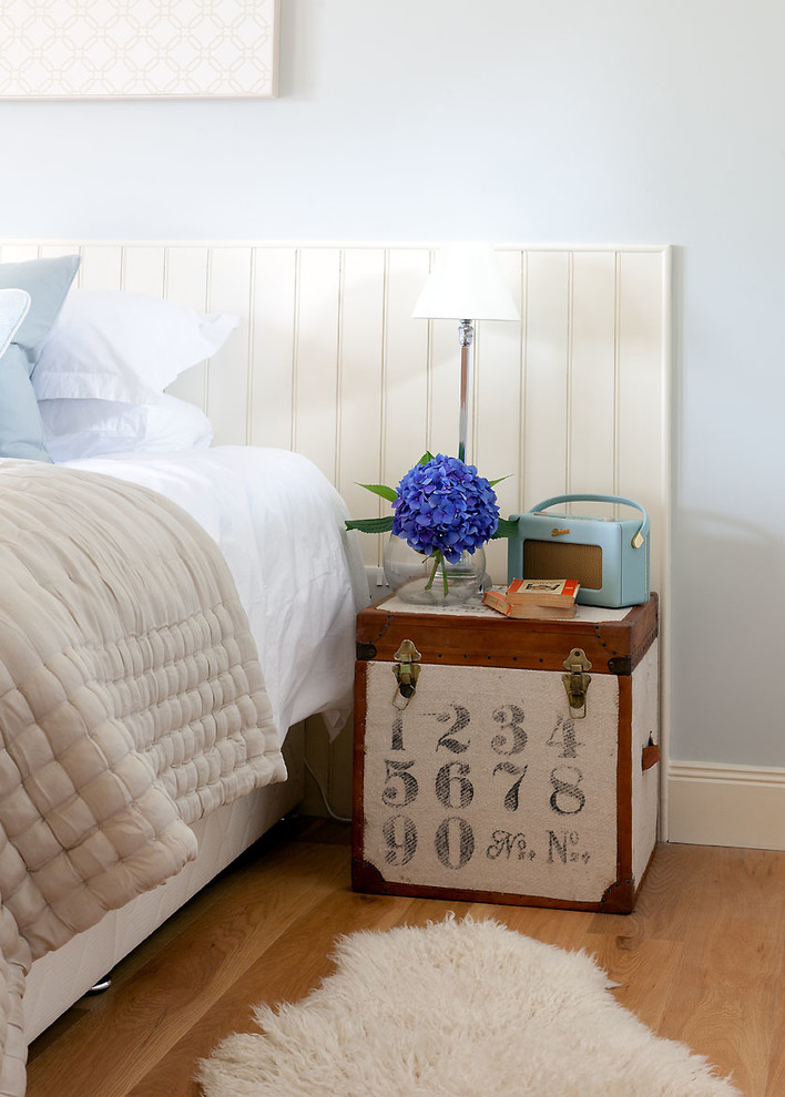 Нам подобаються скрині «мандрівника» з минулого століття: з ременями, і замками, обтягнуті шкірою, на яку можна приклеїти барвисті листівки та марки, при бажанні. Якщо поставити біля ліжка пару таких скринь, спальня може придбати риси колоніального стилю, вдихнути в себе повітря романтики і мрій. Погодьтеся, оригінально і свіжо виглядають скрині, як у світлих, так і в більш темних інтер’єрах спалень.