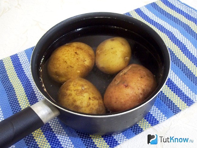 3. Картоплю помийте і, не очищаючи його, відваріть в підсоленій воді до готовності.