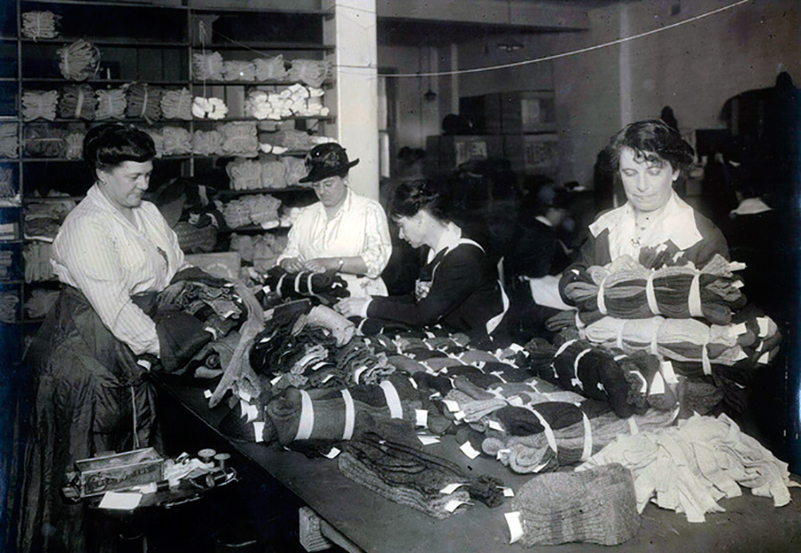 Одяг змінювалася так, щоб забезпечити необхідну зручність у роботі, вона ставала просторішою, багатьом довелося зняти свої прикраси, капелюшки, корсети, змінити пишні зачіски на просто забраний на потилиці в пучок…