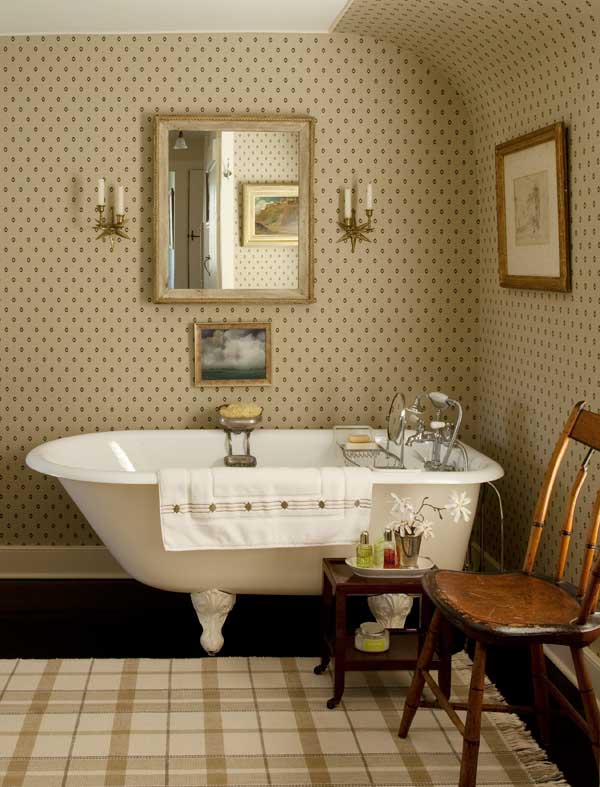 Найкращим матеріалом для облицювання стін ванної кімнати є керамічна плитка, викладена дотриманням всіх правил монтажу. Якщо ви, з якоїсь причини, не готові використовувати її в оформленні приміщення, краще зробити вибір на користь комбінованої обробки. Тобто, якщо шпалери – то неодмінно миються вологостійкі (вінілові), — їх можна застосувати в області раковини, вхідних дверей, біля ванни. Нижню частину стін, все ж, краще облицювати плиткою, декоративним цеглою чи вологостійкими панелями, особливо, в зоні душової кабіни.