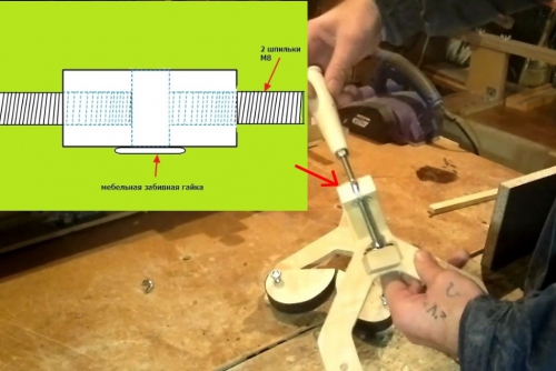 Ці власники (2 шт.) у мене рідко використовується. Раз в два місяці аркуш фанери перенести, а решту часу лежать припадають пилом. Ось і вирішив зробити не більшу доопрацювання. В результаті вийшли торцеві струбцини.
