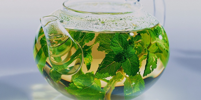- Тертого кореня імбиру одну чайну ложку, 50 г м’яти, дрібку кардамону залити окропом.