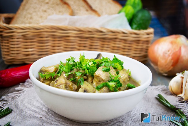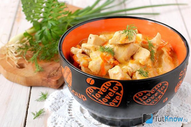 Оскільки після приготування, найчастіше, грудка стає сухуватою, її можна приготувати простим простим способом — стушкувати в сметані, тоді м’ясо стане ніжним і соковитим.