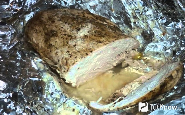 - Не розгортаючи фольгу, відправте м’ясо запікатися в нагріту до 220 градусів духовку на 40 хвилин.
