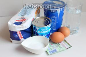 Отже, нам потрібна згущене молоко, йогурт, окріп, яйця, сіль, цукор і дріжджі сухі. Якщо берете свіжі, то треба десь 40 р.