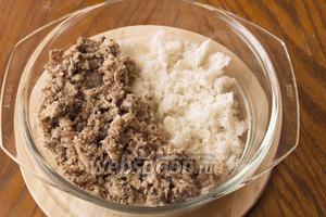 Консерви розминаємо виделкою і викладаємо до м’якушці. Рідина за бажанням можна не зливати, буде соковитіше.