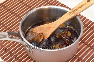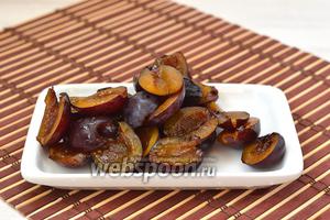 Відцідити сливи від сиропу. Потримати їх в друшляку або сіте 1,5-2 години для того, щоб сироп стек повністю. Сироп, який утворився, можна довести до кипіння і закатати на зиму або використовувати при подачі морозива, млинців, сирних запіканок, сирників і оладок.