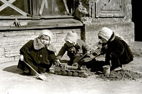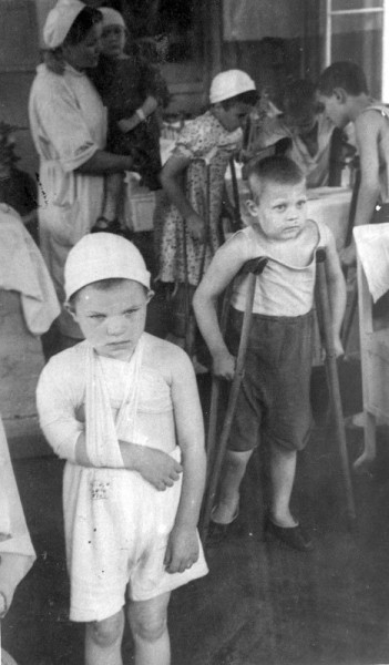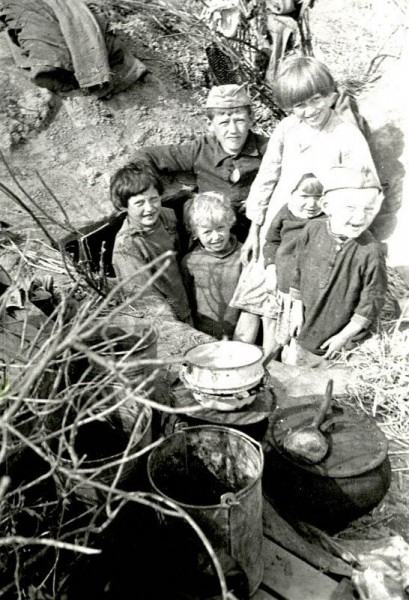 Діти калининских колгоспників у землянки, де вони жили в окупації: