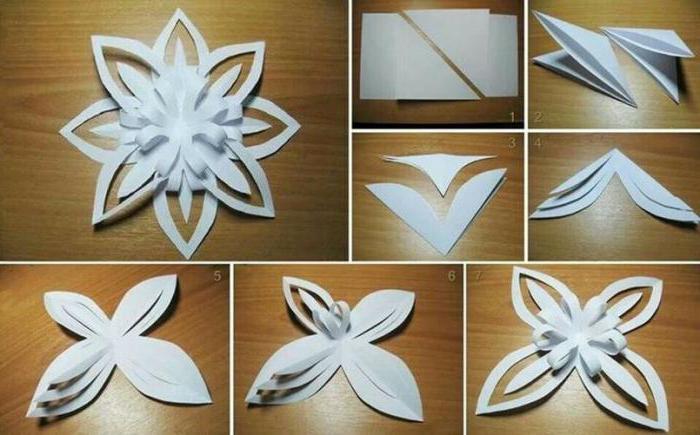 Найпопулярніший спосіб зробити об’ємні сніжинки з паперу виглядає наступним чином.