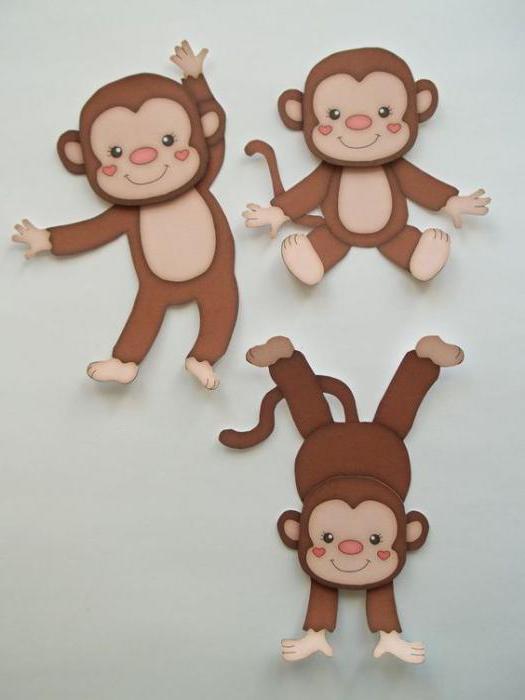 За допомогою товстого двостороннього скотчу можна зробити забавних об’ємних мавпочок з паперу. Шаблони для вирізання спростять, але якщо таких немає, то нічого страшного. Щоб виріб вийшла, потрібно вибирати листи щільніше або брати картон.