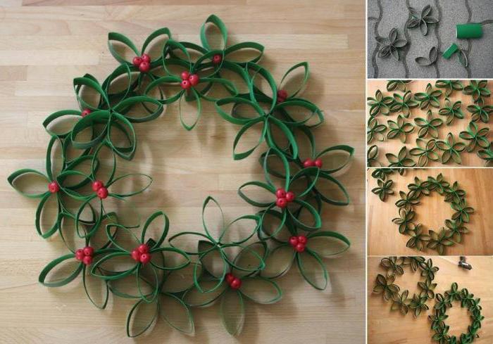 Щоб зробити з паперу прикраси на двері, вам буде потрібно взяти аркуші картону або картонні валики, клейовий пістолет і ножиці.