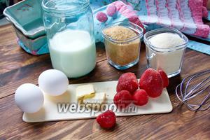 Полуниця заморожена 50 гКрупа манна 180 гМасло вершкове 30 гМолоко 800 млГоріхи волоські 100 гЦукор 100 гЦукор ванільний 2 ч. л.Яйця курячі 2 шт.