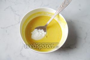 У другій частині апельсинового соку розчинити 2 столові ложки крохмалю.