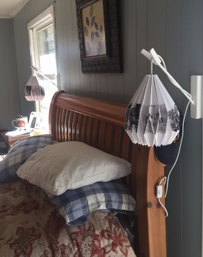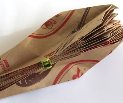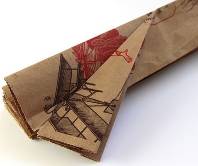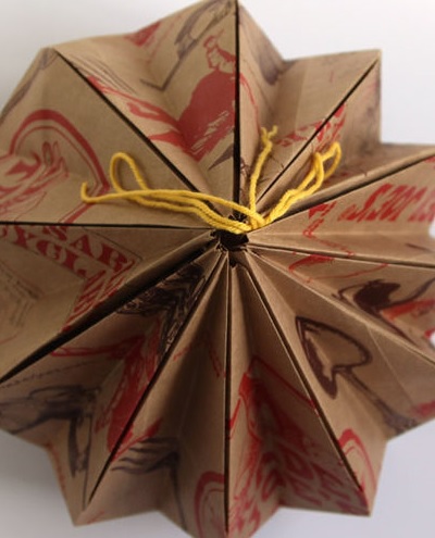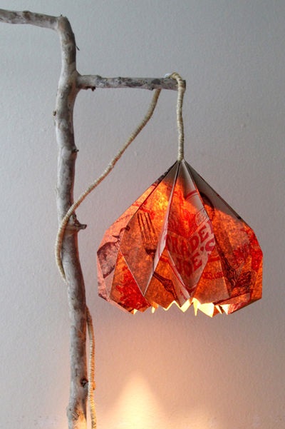 При створенні такої лампи використовується паперовий пакет стандартної форми, який дають у продовольчих магазинах або мережах громадського харчування. Складіть його гармошкою, зігніть куточки і зшийте так, щоб він придбав форму квіткового бутона. Всередину лампу помістіть. Коричневий колір пакту зробить світло лампи злегка червонуватим. Таким чином світильник буде нагадувати справжній квітка. Підставку для такої лампи можна теж зробити з натуральних природних матеріалів. Наприклад підвісити його на товсту висушену гілку.
