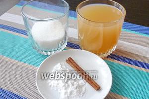 Для роботи візьмемо яблучний сік, картопляний крохмаль, цукор і корицю.