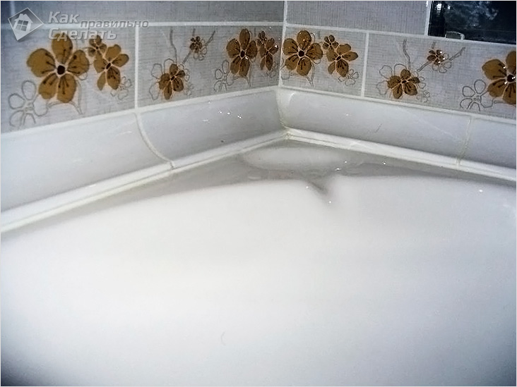 • Очищають і знежирюють поверхню ванни і плитки, яка покладена на стіну.
