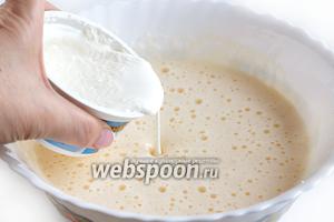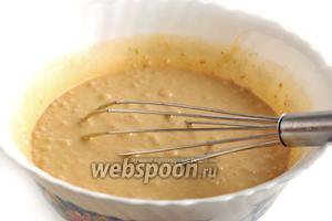 Борошно просіяти і змішати з розпушувачем і ваніліном. Вмішати муку ручним віночком, щоб вийшло гладке тісто без грудочок.
