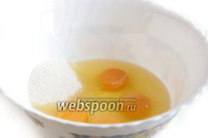 Яйця з’єднати з цукром і збити на високих обертах до пишної і світлої маси.