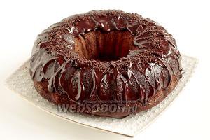Розтопити в мікрохвильовці 1/2 плитки чорного шоколаду, змішати його з 2 ложками теплої води і промазати кекс. Воду я додаю для того, щоб при розрізуванні шоколад не кришився і не тріскався, а був м’яким. Він стає густіше по структурі і вже не ллється, а намазується. Верх посипала шоколадною крихтою. Приємного чаювання!
