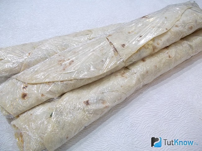 10. Поверніть лаваш рулетом і оберніть харчовою плівкою. Залиште на годину, щоб він просочився.