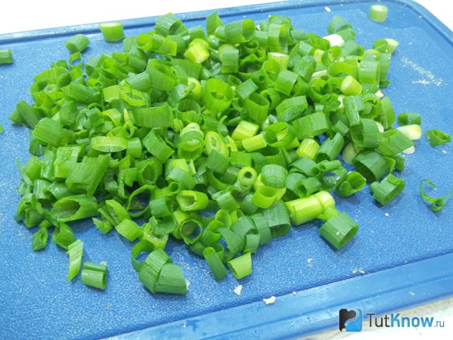 5. Зелена цибуля обполосніть, витріть серветкою і дрібно наріжте.
