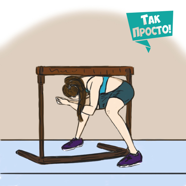 Виконуй глибокі присідання, ніби проходиш під чимось низьким. Зроби 15 повторів.