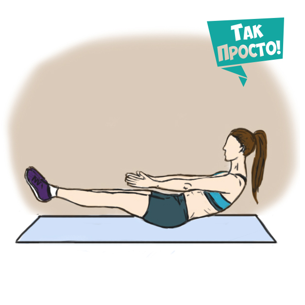 Підніми корпус з положення лежачи так, щоб між спиною і підлогою утворився прямий кут. Затримайся в цій позиції на 60 секунд, для збільшення навантаження можеш злегка підняти ноги вгору.
