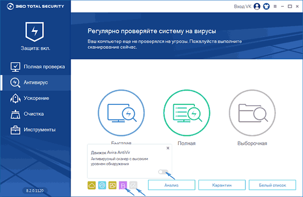 Чи є це причиною не використовувати даний антивірус — не скажу. Мені бачиться, що ні. Користувач, що використовує 360 Total Security також може включити движки Symantec і Mcafee, забезпечити собі майже 100% визначення вірусів, а також використовувати безліч додаткових функцій і все це безкоштовно, російською і безстроково.