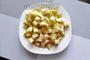 З баклажана зчистимо шкірку, наріжемо невеликим кубиком.