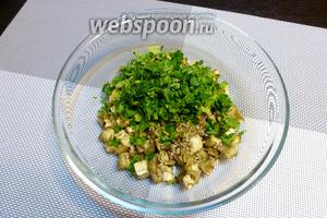 Нарубим дрібно кінзу з петрушкою і додамо їх в салатник.
