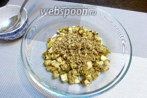 Всиплемо горіхи з часником до баклажанів.
