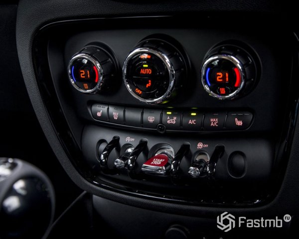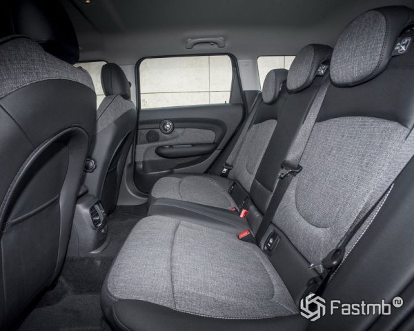 Посередині консолі розташували дисплей, на якому відображається система навігації, зображення з камери заднього виду і як належить налаштування і управління аудіосистемою. Між передніми сидіннями розташували підлокітник для рук. Весь кузов встановлюється на 16″ легкосплавні диски від виробника MINI.