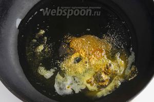 У великій жаровні розпустіть топлене масло (30 г), викладіть прянощі, прогрійте їх гарненько.