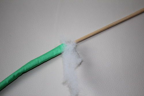 4. Переходимо до набивання деталей наповнювачем. Стебло зручно наповнювати заздалегідь розділеним і скрученим в смужки синтепоном, озброївшись спицею або китайської паличкою для їжі. Якщо ви бажаєте додати стеблу більше стійкості, то всередину нього можна помістити товстий дріт.