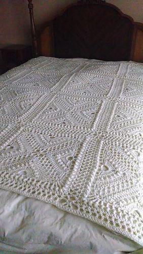 Облямівка, пов’язана впоперек, є однією з класичних видів такого декору. Її специфіка в напрямку в’язання. На фотографіях нижче видно, що ширина полотна становить ширину облямівки, а висота полотна – довжину облямівки.