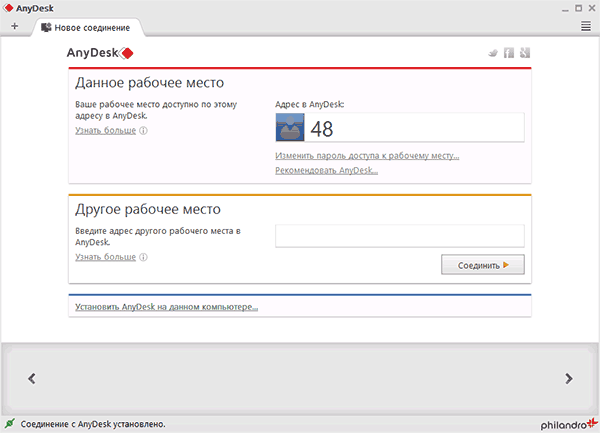 AnyDesk — ще одна безкоштовна програма для віддаленого доступу до комп’ютера, причому вона створена колишніми розробниками TeamViewer. Серед переваг, які заявляють творці — висока швидкість роботи (передачі графіки робочого столу) порівняно з іншими такими ж утилітами.