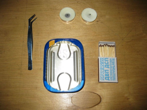 Отже, щоб виготовити такі непромокальні сірники, нам потрібні коробок сірників, довгаста консервна банка, пінцет, джерело вогню (наприклад, свічка) і залишки парафіну від не повністю згорілих свічок.