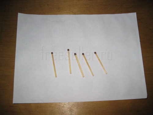 Для початку, потрібно відібрати з коробка 5-6 штук хороших сірників (досить міцних і з великими головками сірки) і на всяк випадок, просушити їх протягом двох-трьох діб над опалювальної батареєю.