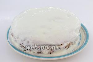 Змащуємо коржі кремом. Сметанник в мультиварці готовий.