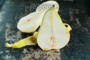 Поки випікається корж, займемося кремом. Для початку очистимо 2 груші, видалимо серцевину.