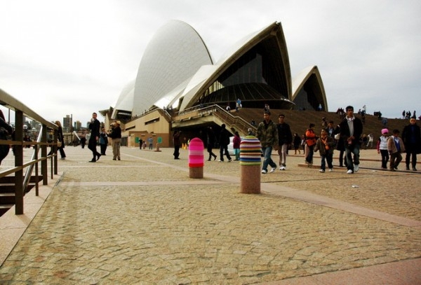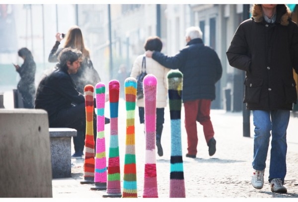 Американська стріт-художниця Магда Сайег(Magda Sayeg) народилася в місті Остін в 1976 році. На думку Магди мистецтво повинно бути загальнодоступним і його не можна ховати за дверима галерей. Магда Сайег в’яже і кольорових ниток «одяг» для скульптур, машин, дерев, будівель та інших незвичайних об’єктів.