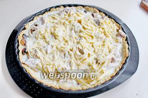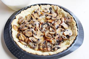 Вийняти тісто з духовки, знято тягар, розподілити обсмажені гриби.