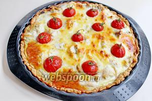 Я приготувала з курки та грибів, з помідорками черрі. Вийшов смачний і дуже ситний пиріг!