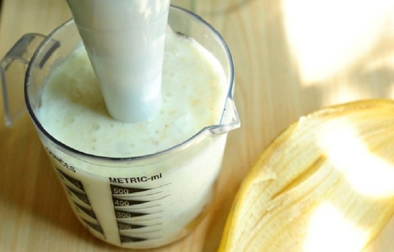 Залий в чашу 2 ст. молока, додаємо 200 г персика і збий, щоб отримати самий ніжний смузі.